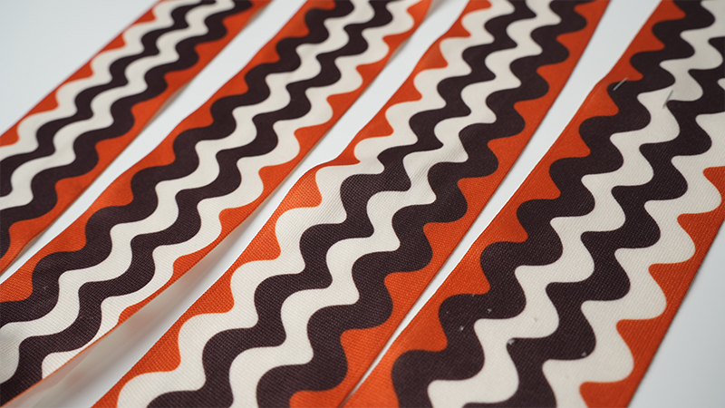 主要為梭織帶和針織帶兩大類。織帶,特別是提花織帶,與布標工藝有點相似,但是布標經紗固定,由緯紗表達圖案;而織帶基本緯紗是固定的,由經紗表達圖案,用的是小機器,每次打版、生產穿紗和調整機器可能都要花很長時間,而且效率相對不高。但是可以制造出種類繁多,眼花繚亂的產品,并不象布標那樣總是那幾樣面孔。織帶主要功能是裝飾性的,也有是功能性的。如流行的手機吊帶等。帶子織出來以后,還可以絲印各種文字/圖案,一般比直接把文字圖案織出來會便宜些。